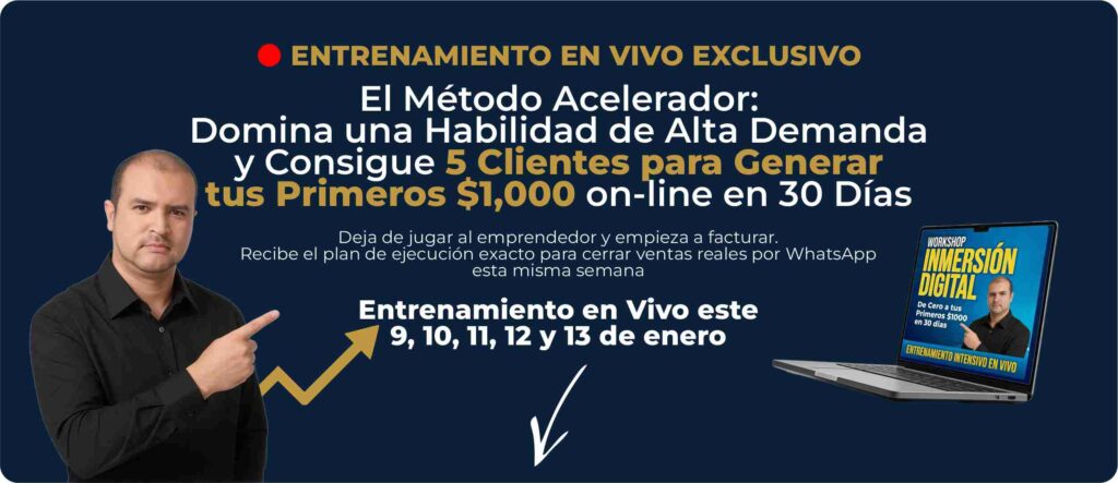 El Método Acelerador: Domina una Habilidad de Alta Demanda y Consigue 5 Clientes para Generar tus Primeros $1,000 on-line en 30 Días